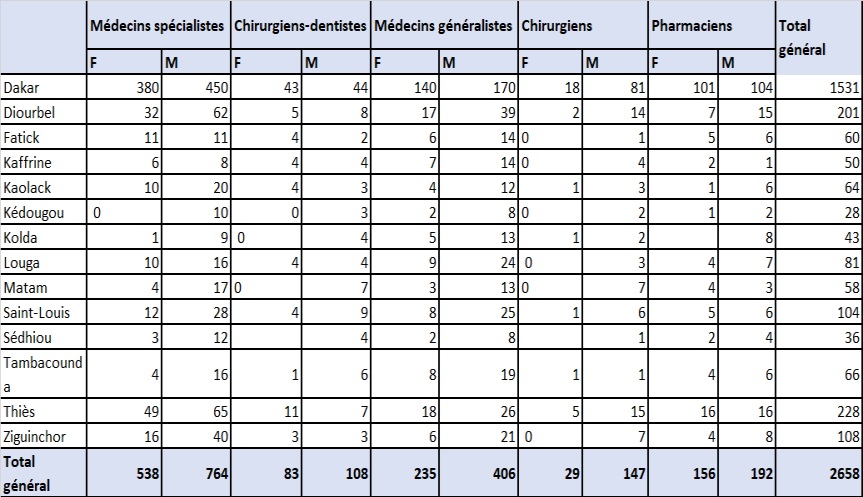 Répartition du personnel médical par sexe et par région